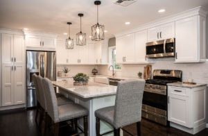 When it’s time to reimagine a kitchen, most homeowners know what colors and style they prefer, and whether they need more storage (the answer to that one is always a resounding YES!), but they don’t necessarily know how to best utilize the space to create a new, more functional floor plan. Don’t worry, that’s what Five Star Kitchen Design Center does every day. We even tend to find space for an island when others think it’s just not possible, as we did for the project below.